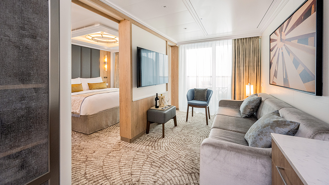 最大、最豪華客艙,最多可容納五位賓客。精選星空套房艙,最具特色之處包括奢華設備、寬敞客艙與陽台,設有兩間臥室、兩間浴室,其一配有附浴缸和獨立淋浴的完整沐浴設備、起居空間和沙發床。除了套房專屬禮遇外,該客艙還可以使用精選餐廳、精選酒廊和位於私人精選區域的聖殿成人休憩區。