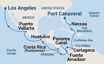 出發港口:佛羅里達州 卡納維拉爾港 (奧蘭多)航向美國 加州 洛杉磯